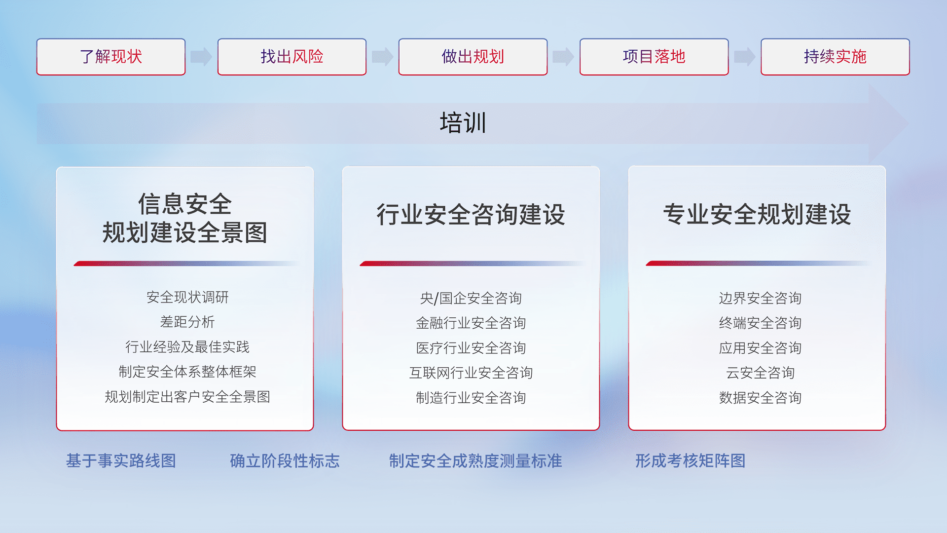 针对客户行业特性,,将宏观的安全战略和需求,,,通过专业的交付服务,,实现项目落地,,,为客户提供标准规范的集成交付服务。。。
