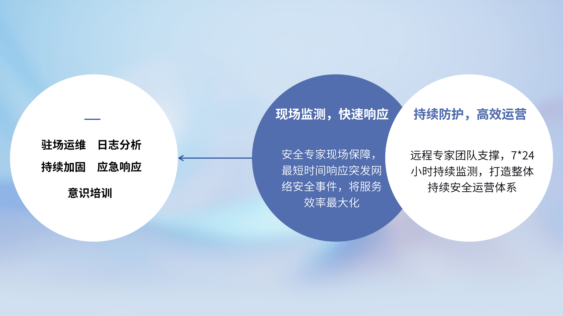 7X24小时持续监测安全事件,保持安全策略有效性,降低资产脆弱性风险,,,精准拦截黑客攻击,,减少被黑客利用的机会,,第一时间遏制,,降低损失。。